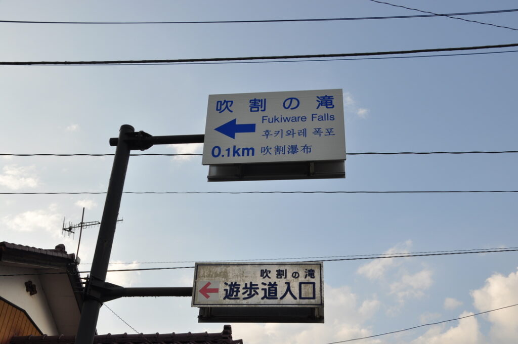 Wir wurden am Hotel gleich von einem freundlichen Opi auf den Parkplatz eingewiesen und bekamen dann von ihm und seiner Frau eine rein japanische Hausführung. Wir nächtigen in einem riesigen, alten japanischen Haus mit riesigem Zimmer, japanischen Toiletten (ganz schlecht) und einem Frühstücksraum. Das bestaunten wir allerdings nur kurz, denn schon saßen wir wieder im Vitz und befanden uns auf dem Weg zum Fukiware no Taki Wasserfall.